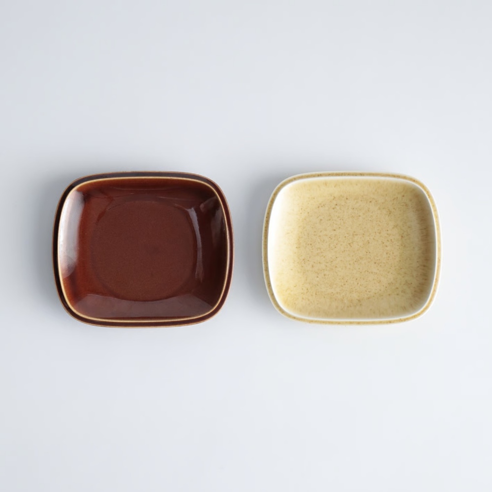Kiln 150 Plateは、3種類あるプレートの中で一番小さいサイズです。丸みを帯びた四角形でケーキ皿などとして使うのにぴったりなサイズです。カラーは2種類で深みのあるブラウンと気取らない素朴な雰囲気のアイボリーで料理を引き立ててくれます。