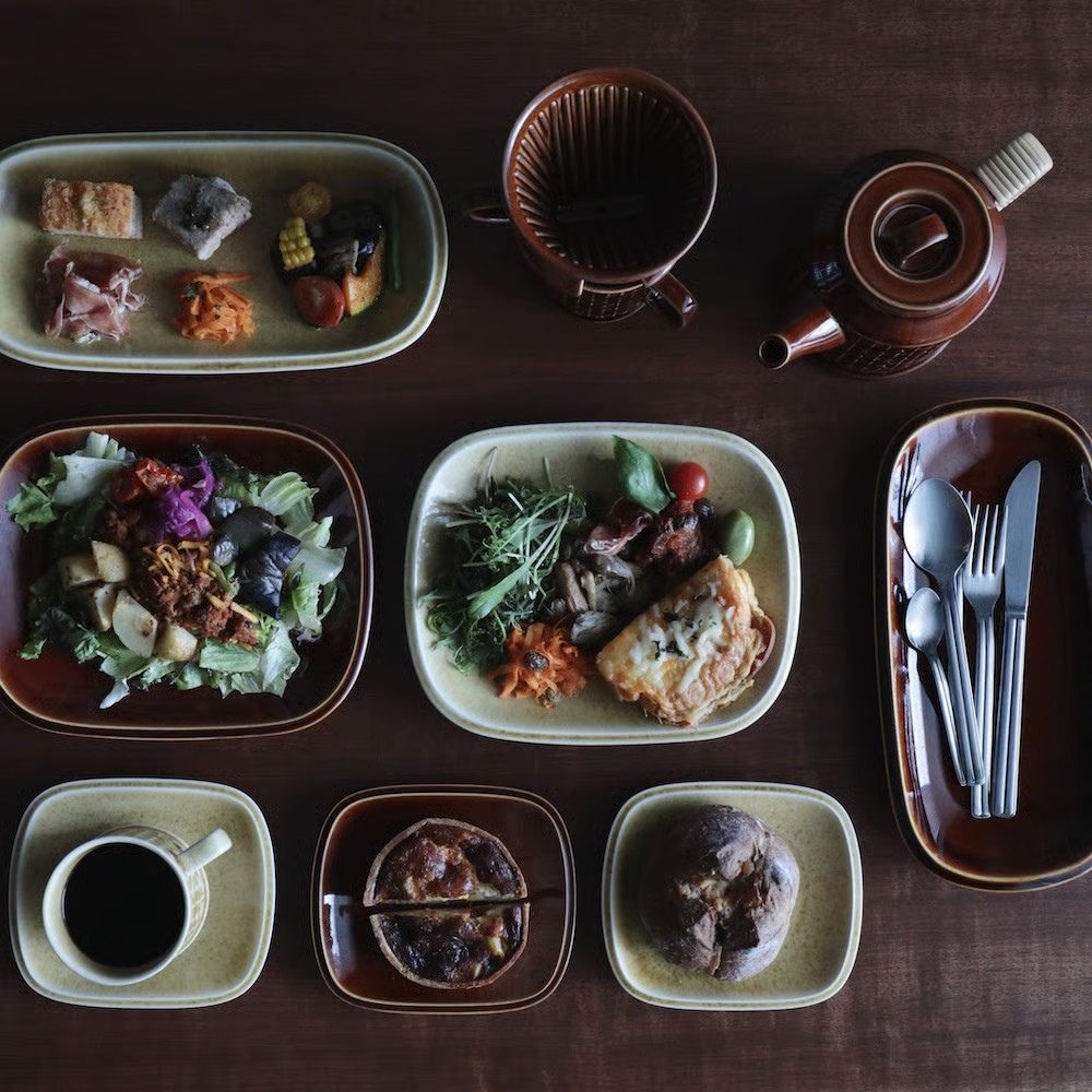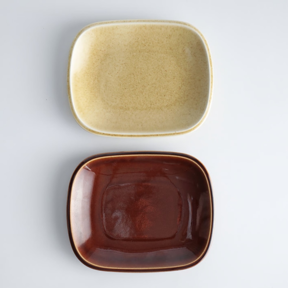 Kiln 230 plateはちょうど一人前の食事の分量が乗せられるサイズ感で、パスタやカレー皿におすすめ出来ます。とんかつにキャベツ、プラスで彩りの良い副菜を盛り付けたり、オムライスにもちょうどいいかもしれません。パーティーメニューにも活躍しそうです。手巻き寿司やタコスなど好きな具材をたくさん入れて巻くようなときも、取り皿のように小さ過ぎず、反対に大き過ぎもしないので窮屈にならずにお皿の中で上手に巻けます。短辺より長辺が少しだけ長さのある長方形が絶妙なサイズで、テーブルの中でもスマートに収まり複数人での食事もゆったり楽しめます。