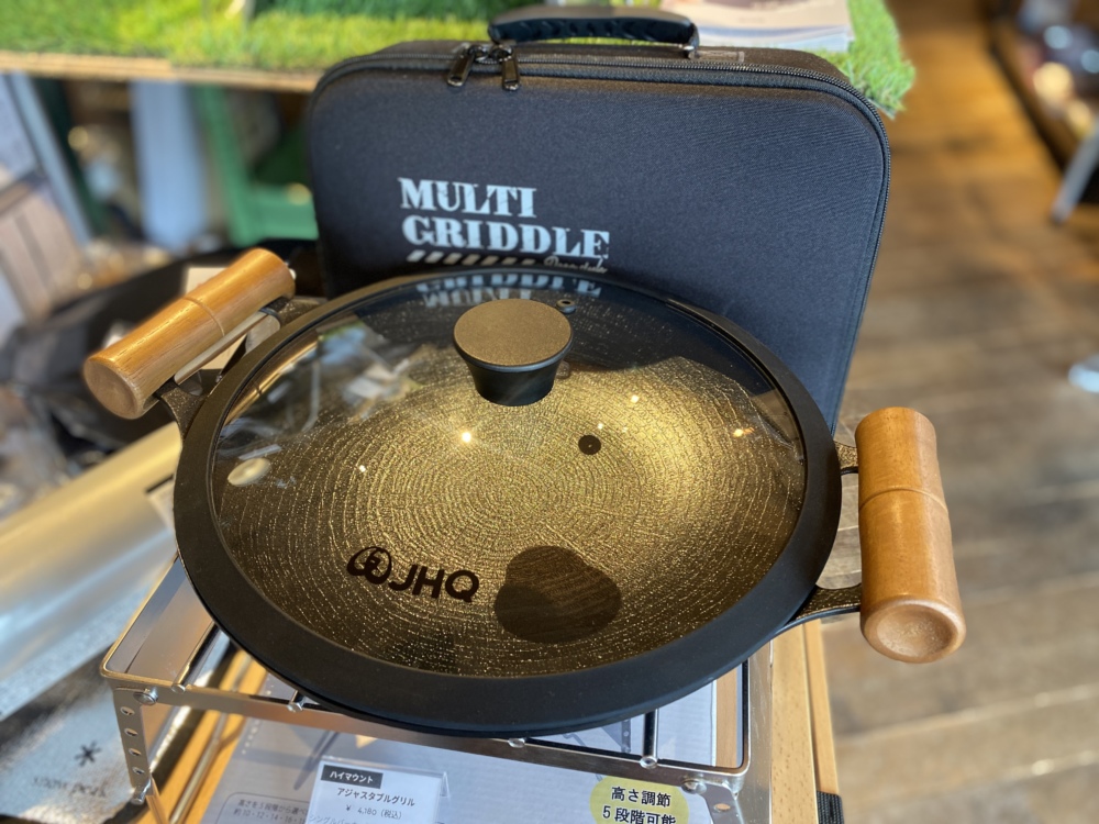 大人気アイテム、JHQの「鉄板マルチグリドル」。食材が、くっつかず焦げ付きにくい、軽い、洗えるということで、その扱いやすさから大好評をいただいております。キャンプにはもってこいのアイテムで、たくさんのお客様に愛されている商品です。IHなど各種ヒーターに対応しているのでキャンプのみならずご家庭で使われている方も多いかと思います。